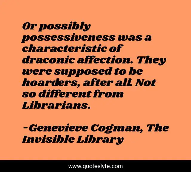 "Genevieve Cogman, The Invisible Library Quotes." Quoteslyfe.com, 2025. Fri. 05 Dec. 2025. <https://www.quoteslyfe.com/quote/Or-possibly-possessiveness-was-a-characteristic-of-229663>.