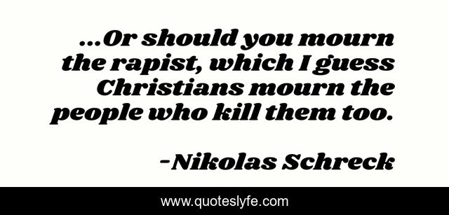 "Nikolas Schreck Quotes." Quoteslyfe.com, 2025. Mon. 08 Dec. 2025. <https://www.quoteslyfe.com/quote/Or-should-you-mourn-the-rapist-which-164250>.