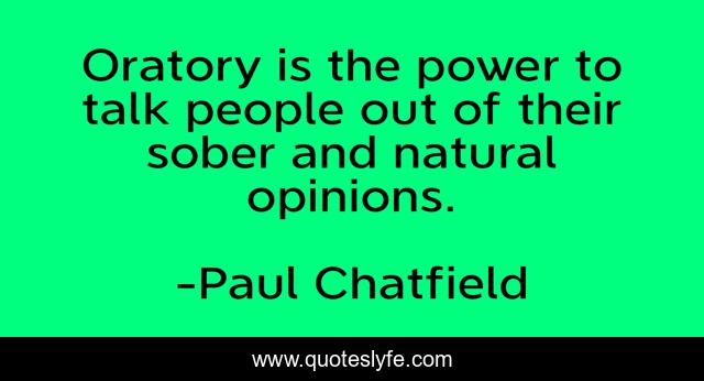 This page presents the quote "Oratory is the power to talk people out of their sober and natural opinions.". Author of this quote is Paul Chatfield. .