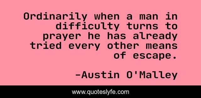 This page presents the quote "Ordinarily when a man in difficulty turns to prayer he has already tried every other means of escape.". Author of this quote is Austin O'Malley. .
