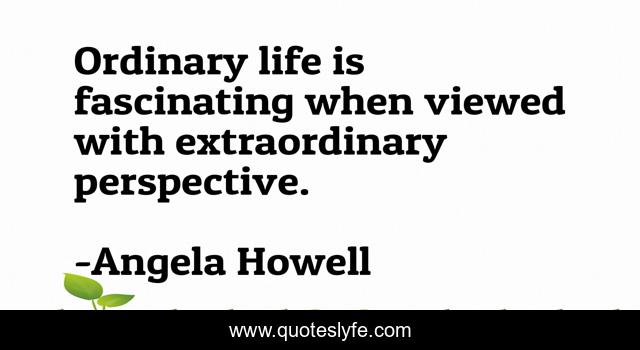 This page presents the quote "Ordinary life is fascinating when viewed with extraordinary perspective.". Author of this quote is Angela Howell. This quote is about self-awareness, perspective, self-help,.