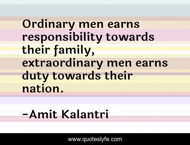 Ordinary men earns responsibility towards their family, extraordinary men earns duty towards their nation.