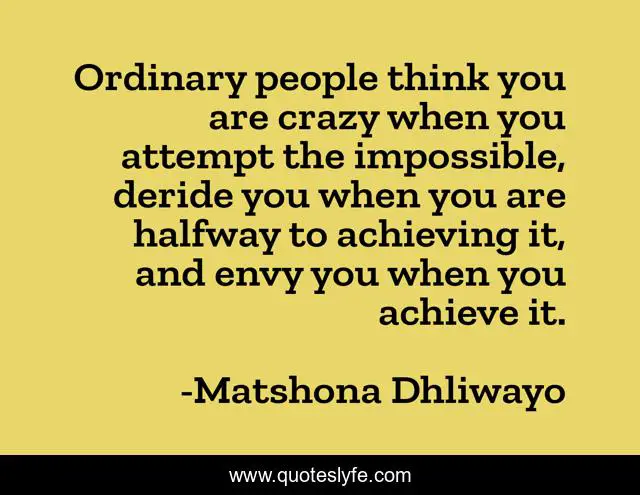 "Matshona Dhliwayo Quotes." Quoteslyfe.com, 2025. Mon. 08 Dec. 2025. <https://www.quoteslyfe.com/quote/Ordinary-people-think-you-are-crazy-when-189992>.