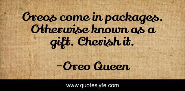This page presents the quote "Oreos come in packages. Otherwise known as a gift. Cherish it.". Author of this quote is Oreo Queen. This quote is about gifts, oreos, humor, cherish,.