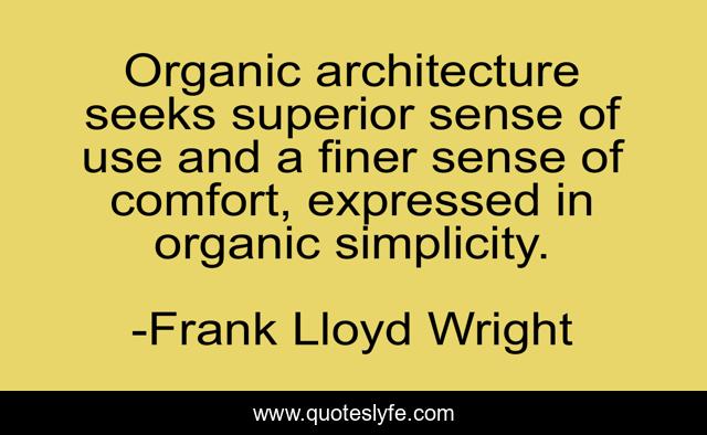 This page presents the quote "Organic architecture seeks superior sense of use and a finer sense of comfort, expressed in organic simplicity.". Author of this quote is Frank Lloyd Wright. This quote is about simplicity, comfort, sense,.
