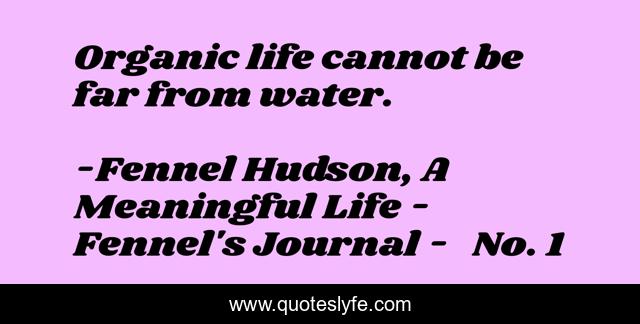 This page presents the quote "Organic life cannot be far from water.". Author of this quote is Fennel Hudson, A Meaningful Life - Fennel's Journal - No. 1. This quote is about water, life,.