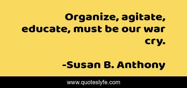 "Susan B. Anthony Quotes." Quoteslyfe.com, 2025. Tue. 09 Dec. 2025. <https://www.quoteslyfe.com/quote/Organize-agitate-educate-must-be-our-war-285544>.
