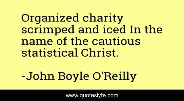 This page presents the quote "Organized charity scrimped and iced In the name of the cautious statistical Christ.". Author of this quote is John Boyle O'Reilly. .