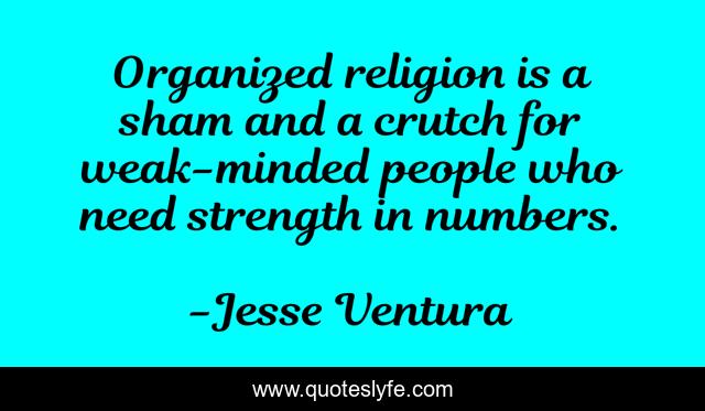 This page presents the quote "Organized religion is a sham and a crutch for weak-minded people who need strength in numbers.". Author of this quote is Jesse Ventura. This quote is about religion, numbers, people,.
