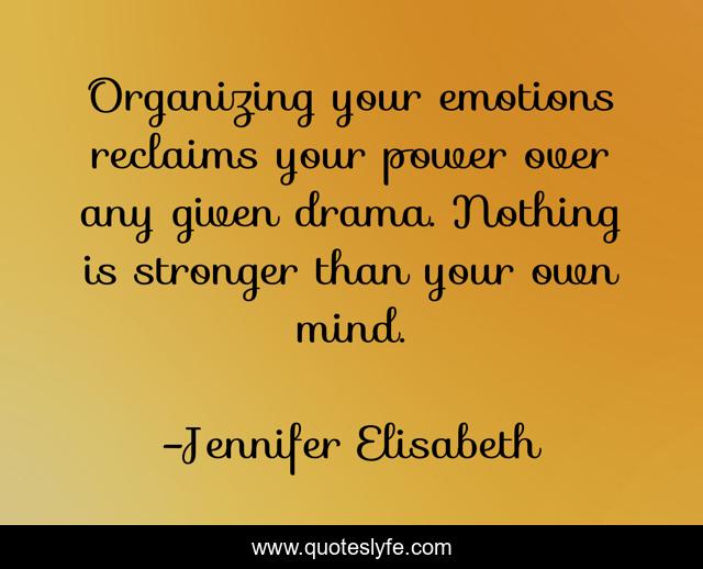 "Jennifer Elisabeth Quotes." Quoteslyfe.com, 2025. Fri. 05 Dec. 2025. <https://www.quoteslyfe.com/quote/Organizing-your-emotions-reclaims-your-power-over-87365>.