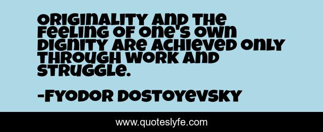 This page presents the quote "Originality and the feeling of one's own dignity are achieved only through work and struggle.". Author of this quote is Fyodor Dostoyevsky. .
