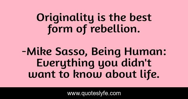 "Mike Sasso, Being Human: Everything you didn't want to know about life. Quotes." Quoteslyfe.com, 2025. Sun. 07 Dec. 2025. <https://www.quoteslyfe.com/quote/Originality-is-the-best-form-of-rebellion-107773>.