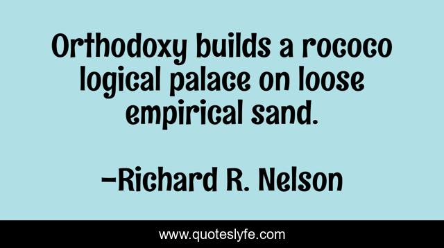 This page presents the quote "Orthodoxy builds a rococo logical palace on loose empirical sand.". Author of this quote is Richard R. Nelson. .