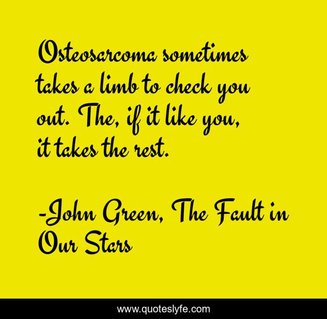 "John Green, The Fault in Our Stars Quotes." Quoteslyfe.com, 2025. Fri. 05 Dec. 2025. <https://www.quoteslyfe.com/quote/Osteosarcoma-sometimes-takes-a-limb-to-check-281040>.