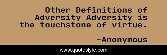 This page presents the quote "Other Definitions of Adversity Adversity is the touchstone of virtue.". Author of this quote is Anonymous. This quote is about victories, worthy,.