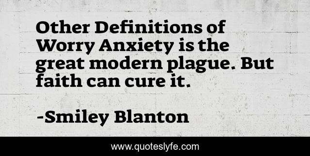 This page presents the quote "Other Definitions of Worry Anxiety is the great modern plague. But faith can cure it.". Author of this quote is Smiley Blanton. .