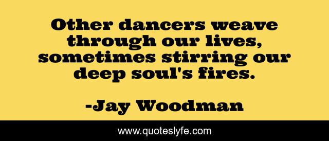 This page presents the quote "Other dancers weave through our lives, sometimes stirring our deep soul's fires.". Author of this quote is Jay Woodman. This quote is about fire, dancers, lives, soul,.