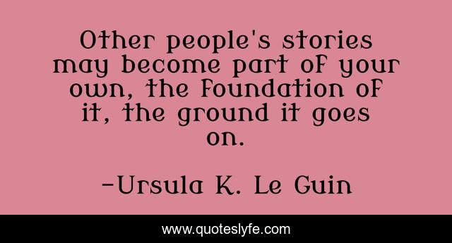 This page presents the quote "Other people's stories may become part of your own, the foundation of it, the ground it goes on.". Author of this quote is Ursula K. Le Guin. .