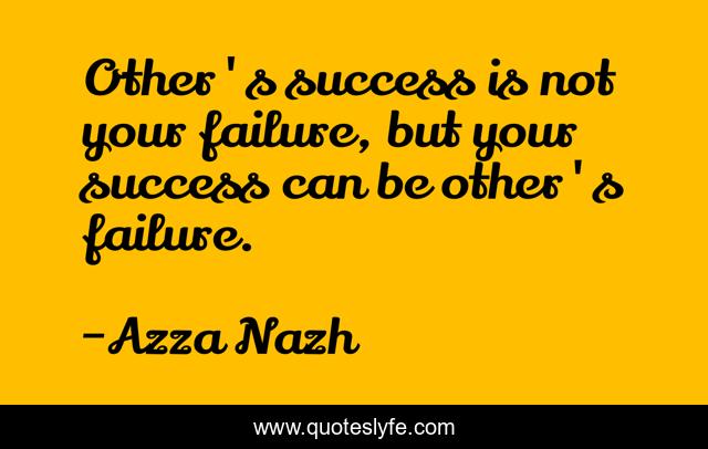 This page presents the quote "Other's success is not your failure, but your success can be other's failure.". Author of this quote is Azza Nazh. This quote is about failure, life, success,.