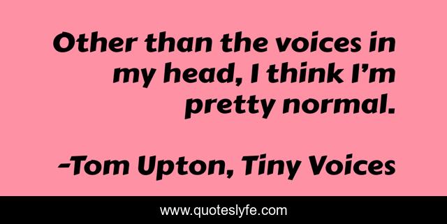 This page presents the quote "Other than the voices in my head, I think I’m pretty normal.". Author of this quote is Tom Upton, Tiny Voices. This quote is about humor, young-adult,.