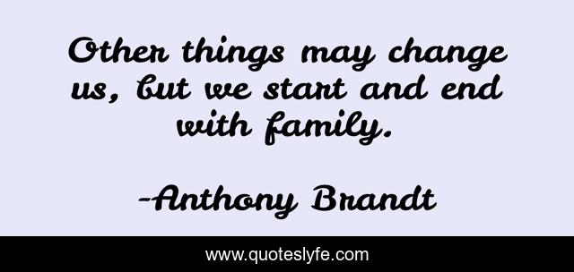 This page presents the quote "Other things may change us, but we start and end with family.". Author of this quote is Anthony Brandt. .
