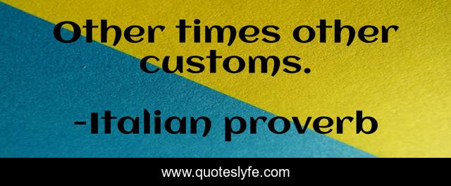 This page presents the quote "Other times other customs.". Author of this quote is Italian proverb. .
