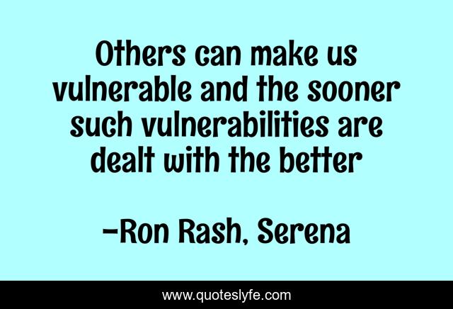 This page presents the quote "Others can make us vulnerable and the sooner such vulnerabilities are dealt with the better". Author of this quote is Ron Rash, Serena. This quote is about humans, love, vulnerable, affection, feelings,.