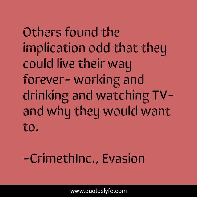 This page presents the quote "Others found the implication odd that they could live their way forever- working and drinking and watching TV- and why they would want to.". Author of this quote is CrimethInc., Evasion. This quote is about enthusiasm, life, adventure, inspirational,.