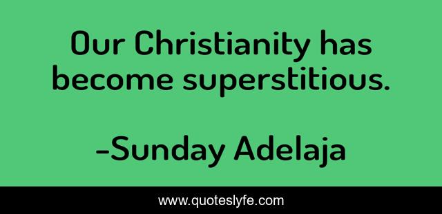 This page presents the quote "Our Christianity has become superstitious.". Author of this quote is Sunday Adelaja. This quote is about christianity, superstitions,.