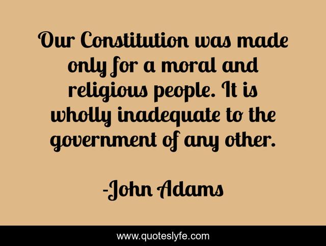 This page presents the quote "Our Constitution was made only for a moral and religious people. It is wholly inadequate to the government of any other.". Author of this quote is John Adams. This quote is about moral, constitution, people,.
