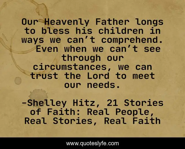"Shelley Hitz, 21 Stories of Faith: Real People, Real Stories, Real Faith Quotes." Quoteslyfe.com, 2025. Fri. 05 Dec. 2025. <https://www.quoteslyfe.com/quote/Our-Heavenly-Father-longs-to-bless-his-119982>.