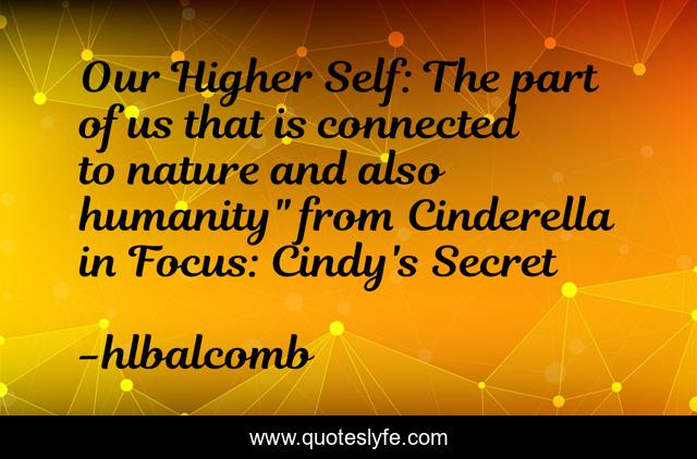 This page presents the quote "Our Higher Self: The part of us that is connected to nature and also humanity" from Cinderella in Focus: Cindy's Secret". Author of this quote is hlbalcomb. This quote is about individuality, nature, light, cinderella, crown, higher-self, cinderellainfocus, humanity, hope,.