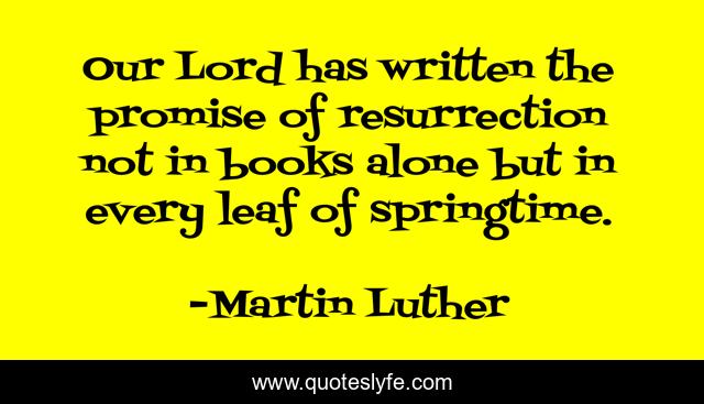 This page presents the quote "Our Lord has written the promise of resurrection not in books alone but in every leaf of springtime.". Author of this quote is Martin Luther. .
