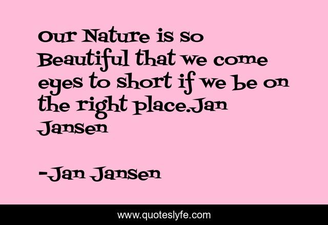 This page presents the quote "Our Nature is so Beautiful that we come eyes to short if we be on the right place.Jan Jansen". Author of this quote is Jan Jansen. .