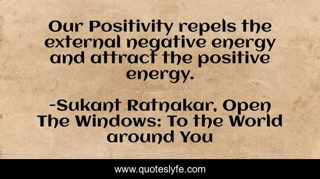 "Sukant Ratnakar, Open The Windows: To the World around You Quotes." Quoteslyfe.com, 2025. Sat. 06 Dec. 2025. <https://www.quoteslyfe.com/quote/Our-Positivity-repels-the-external-negative-energy-95492>.
