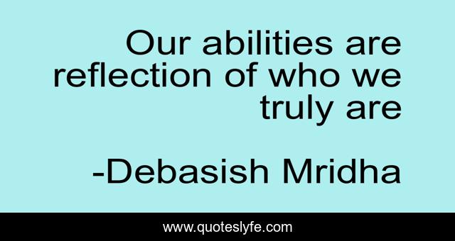 This page presents the quote "Our abilities are reflection of who we truly are". Author of this quote is Debasish Mridha. This quote is about our-abilities, philosophy, debasish-mridha, quotes, relection-of-us, debasish-mridha-md, inspirational, who-we-truly-are, enthusiasm,.