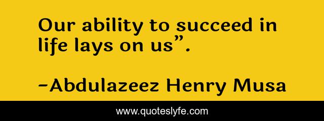 This page presents the quote "Our ability to succeed in life lays on us”.". Author of this quote is Abdulazeez Henry Musa. .