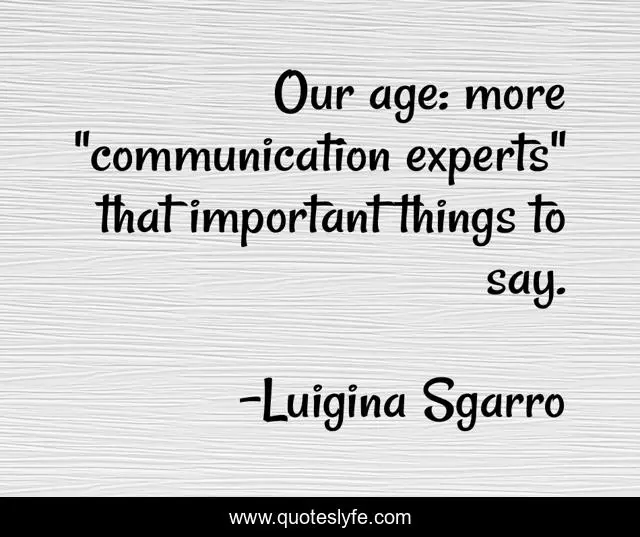 "Luigina Sgarro Quotes." Quoteslyfe.com, 2025. Sat. 06 Dec. 2025. <https://www.quoteslyfe.com/quote/Our-age-more-communication-experts-that-important-185284>.