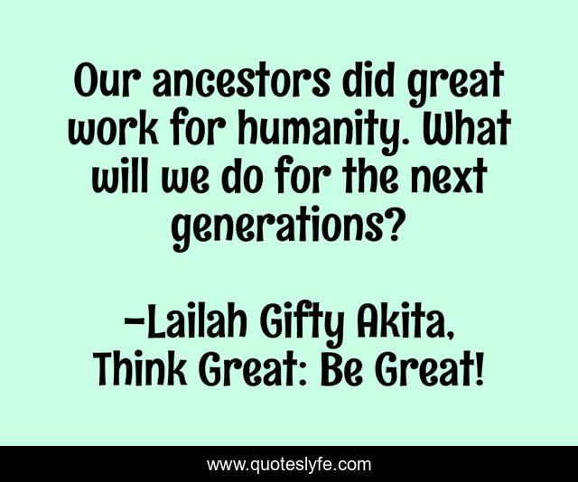 "Lailah Gifty Akita, Think Great: Be Great! Quotes." Quoteslyfe.com, 2025. Mon. 08 Dec. 2025. <https://www.quoteslyfe.com/quote/Our-ancestors-did-great-work-for-humanity-102721>.