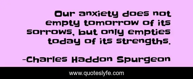 This page presents the quote "Our anxiety does not empty tomorrow of its sorrows, but only empties today of its strengths.". Author of this quote is Charles Haddon Spurgeon. .