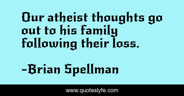 This page presents the quote "Our atheist thoughts go out to his family following their loss.". Author of this quote is Brian Spellman. This quote is about atheism, atheist, humorous, death-of-a-loved-one,.