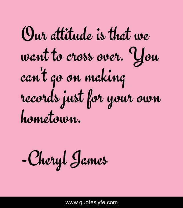 This page presents the quote "Our attitude is that we want to cross over. You can't go on making records just for your own hometown.". Author of this quote is Cheryl James. .
