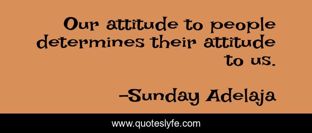 This page presents the quote "Our attitude to people determines their attitude to us.". Author of this quote is Sunday Adelaja. This quote is about behaviour, attitude,.