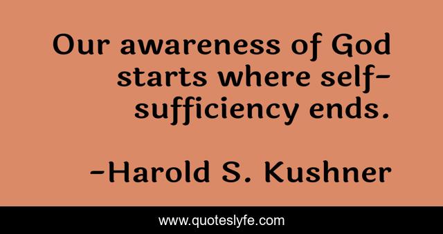 This page presents the quote "Our awareness of God starts where self-sufficiency ends.". Author of this quote is Harold S. Kushner. This quote is about faith, discipleship,.