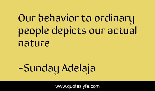This page presents the quote "Our behavior to ordinary people depicts our actual nature". Author of this quote is Sunday Adelaja. This quote is about love, people, money, principles, employment, worship, celebrating-people, destiny, service,.