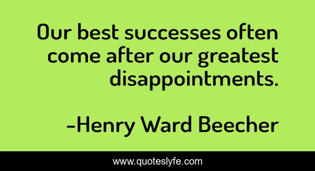 This page presents the quote "Our best successes often come after our greatest disappointments.". Author of this quote is Henry Ward Beecher. This quote is about successes, greatest, best,.