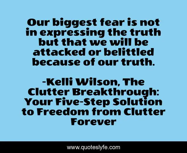 "Kelli Wilson, The Clutter Breakthrough: Your Five-Step Solution to Freedom from Clutter Forever Quotes." Quoteslyfe.com, 2025. Sat. 06 Dec. 2025. <https://www.quoteslyfe.com/quote/Our-biggest-fear-is-not-in-expressing-45054>.