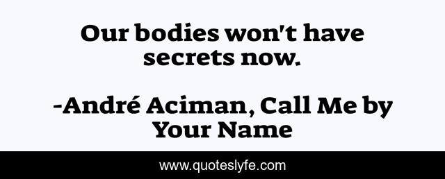 "André Aciman, Call Me by Your Name Quotes." Quoteslyfe.com, 2025. Sat. 06 Dec. 2025. <https://www.quoteslyfe.com/quote/Our-bodies-won-t-have-secrets-now-212196>.