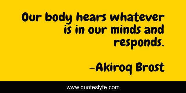 This page presents the quote "Our body hears whatever is in our minds and responds.". Author of this quote is Akiroq Brost. This quote is about health, mindfulness,.