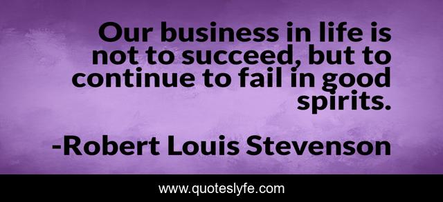 This page presents the quote "Our business in life is not to succeed, but to continue to fail in good spirits.". Author of this quote is Robert Louis Stevenson. .